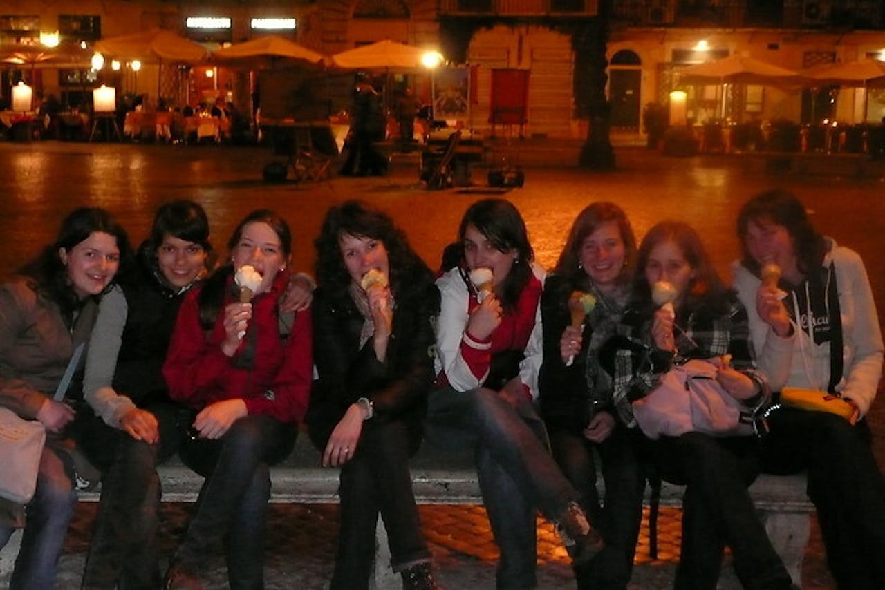 Met mijn vriendinnen een ijsje eten op Piazza Navona tijdens de Rome-excursie (2008).