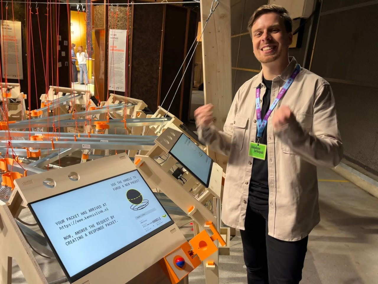 Designtechnoloog Lei Nelissen van Bureau Moeilijke Dingen bij de installatie Packet Run.