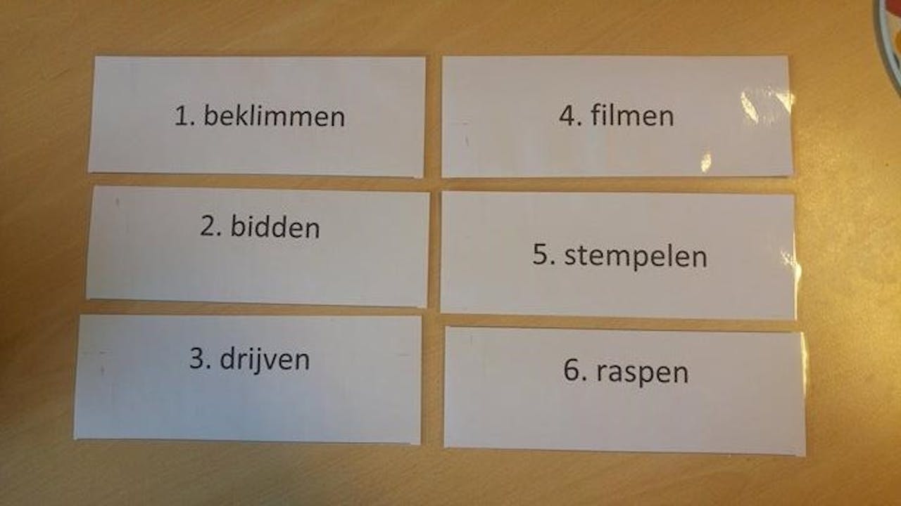 De werkwoorden die we gebruikten tijdens ons experiment.