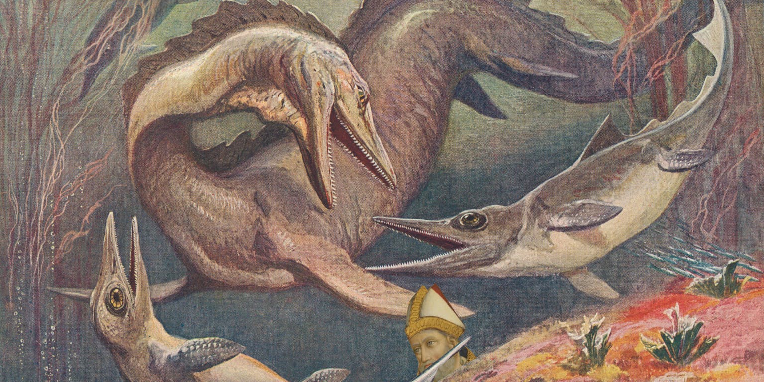 Sint Augustinus neemt samen met ons een kijkje onder water. Wat te doen met de tijd waarin de Mosasaurus en Ichthyosaurus leefden?