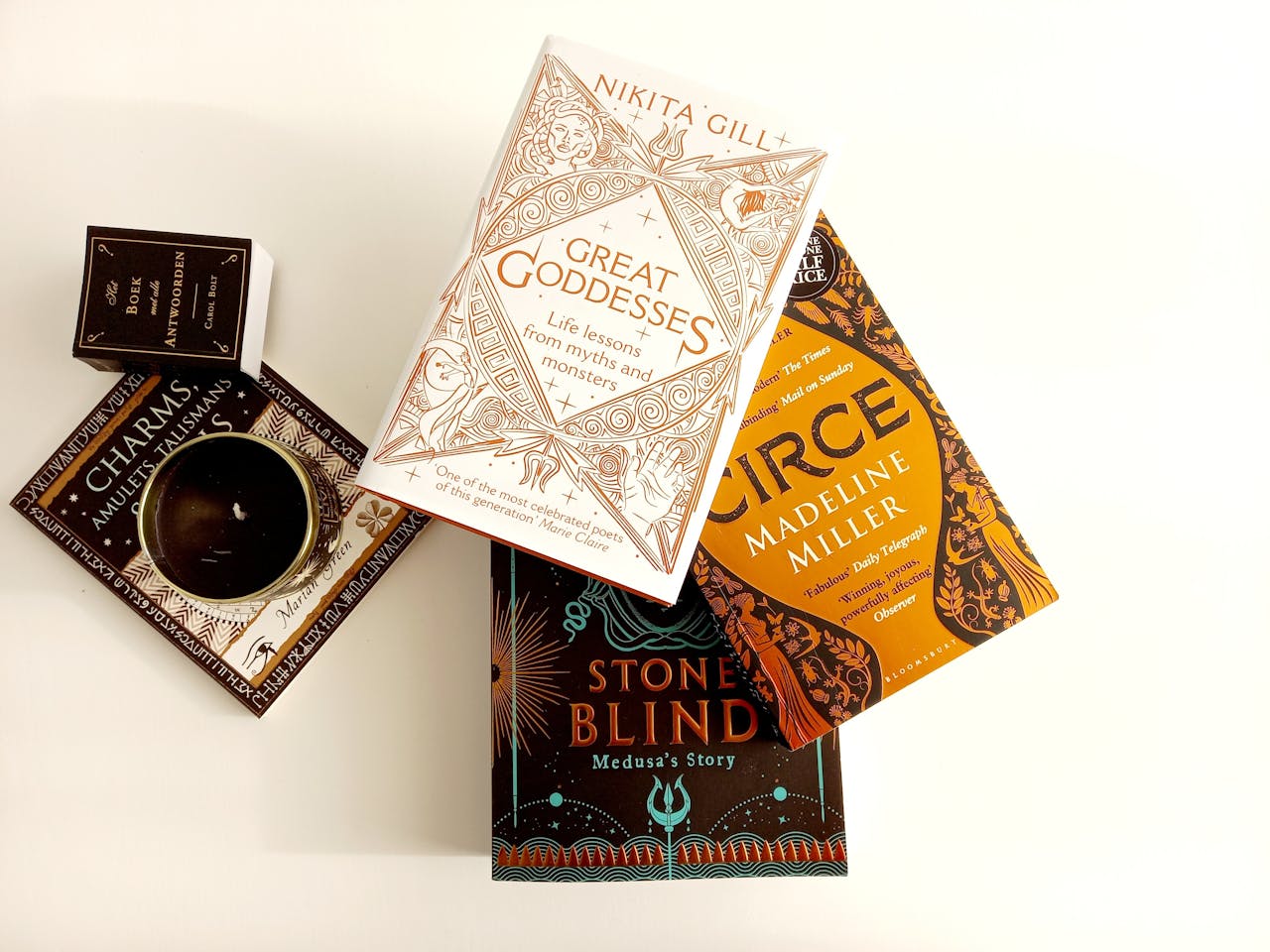 Als je een boekhandel binnenstapt, vallen ze op: de vele boeken met vrouwelijke helden, heksen en ‘monsters’ uit de oudheid. Laten we om te beginnen stilstaan bij het uiterlijk van deze boeken. De vormgevers die de kaften ontwierpen, hebben duidelijk naar elkaar gekeken. Glimmende goudkleurige details springen uit boven een donkere zwarte of juist lichte, witte ondergrond. De boeken behoren tot hetzelfde genre. De verhalen richten zich voornamelijk op de belevingswereld van vrouwelijke hoofdpersonen, figuren uit de Griekse Mythologie. In de bekende Griekse mythes spelen deze vrouwen toch ook wel een rol, maar wel binnen verhalen over mannen. De nieuwe moderne hervertellingen draaien juist volledig om deze vrouwen. Denk bijvoorbeeld aan de boeken over de ‘heks’ Circe en de koningin Penelope die voorkomen als figuren in de oude verhalen die draaien om de Griekse held Odysseus. Nu krijgen ze hun eigen boeken.